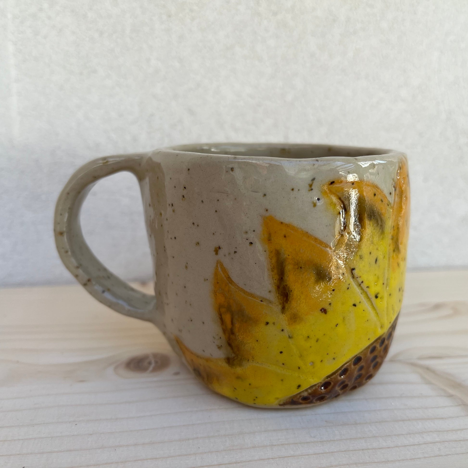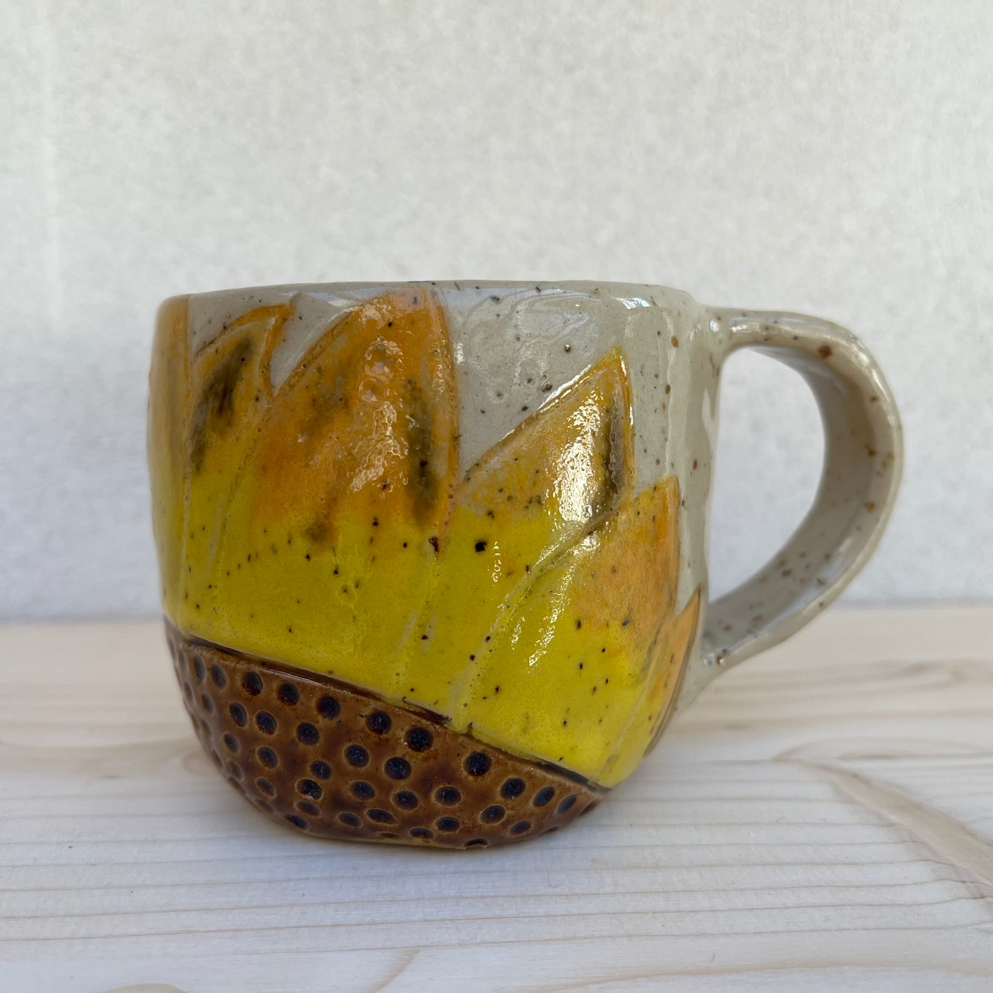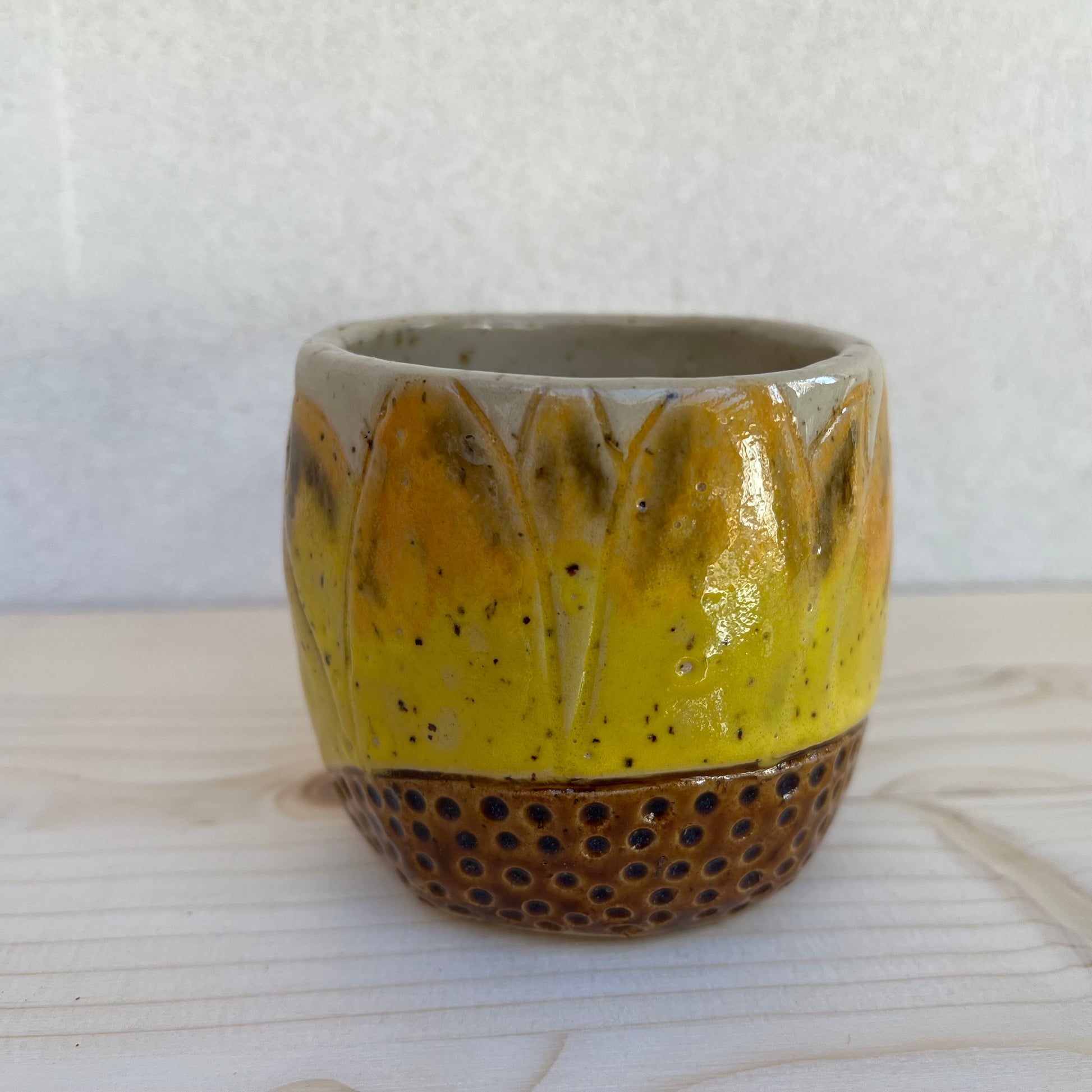 Solsikke koppen er formet i lys stentøjsler med lavapletter.